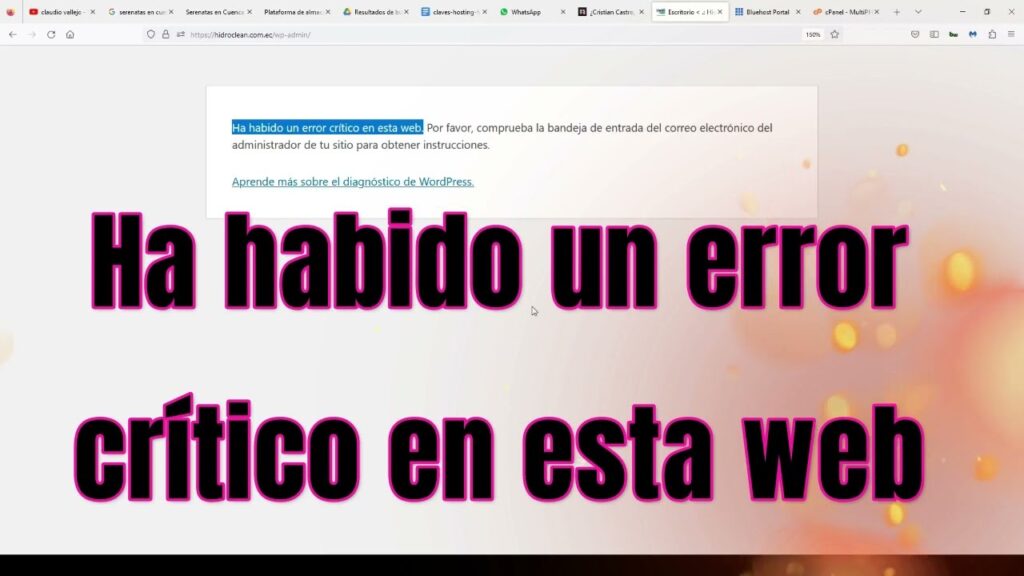 Descubre cómo corregimos el error crítico y restauramos la funcionalidad de tu página web en WordPress. En el siguiente video, se explica detalladamente el proceso a seguir para solucionar un error común en wordpress que dice “ha habido un error crítico en esta…” Este problema suele presentarse en wordpress cuando